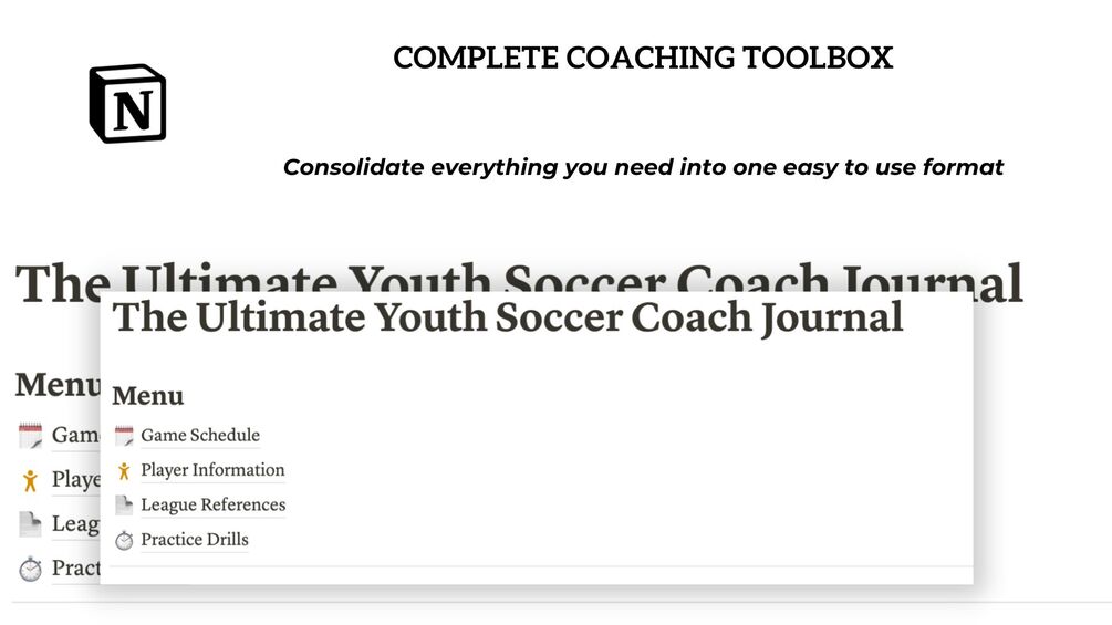 The Ultimate Youth Soccer Coaching Journal template on Notion