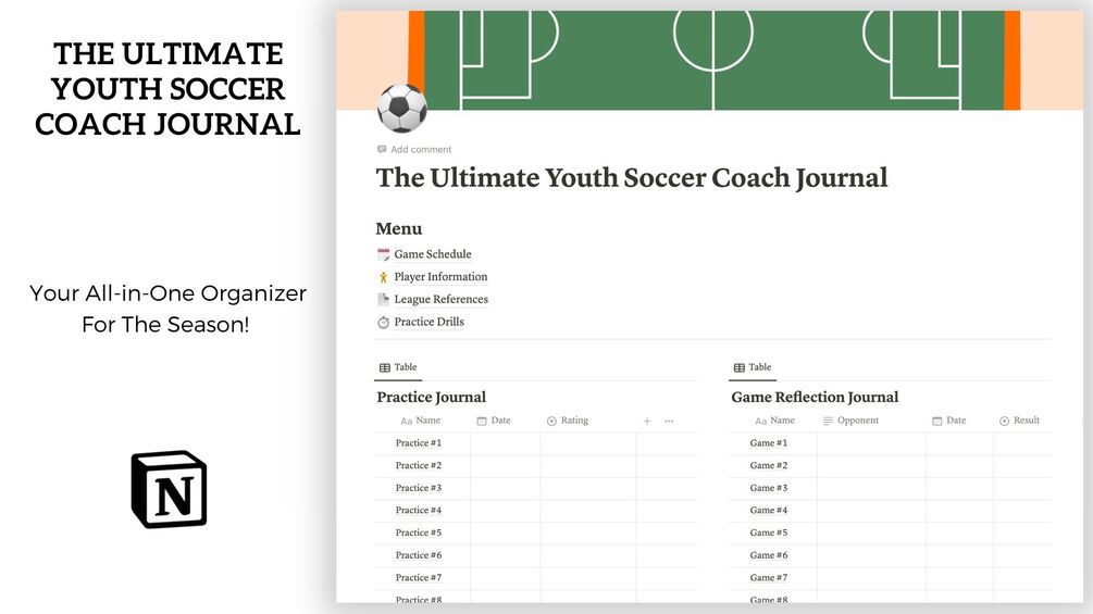 The Ultimate Youth Soccer Coaching Journal template on Notion